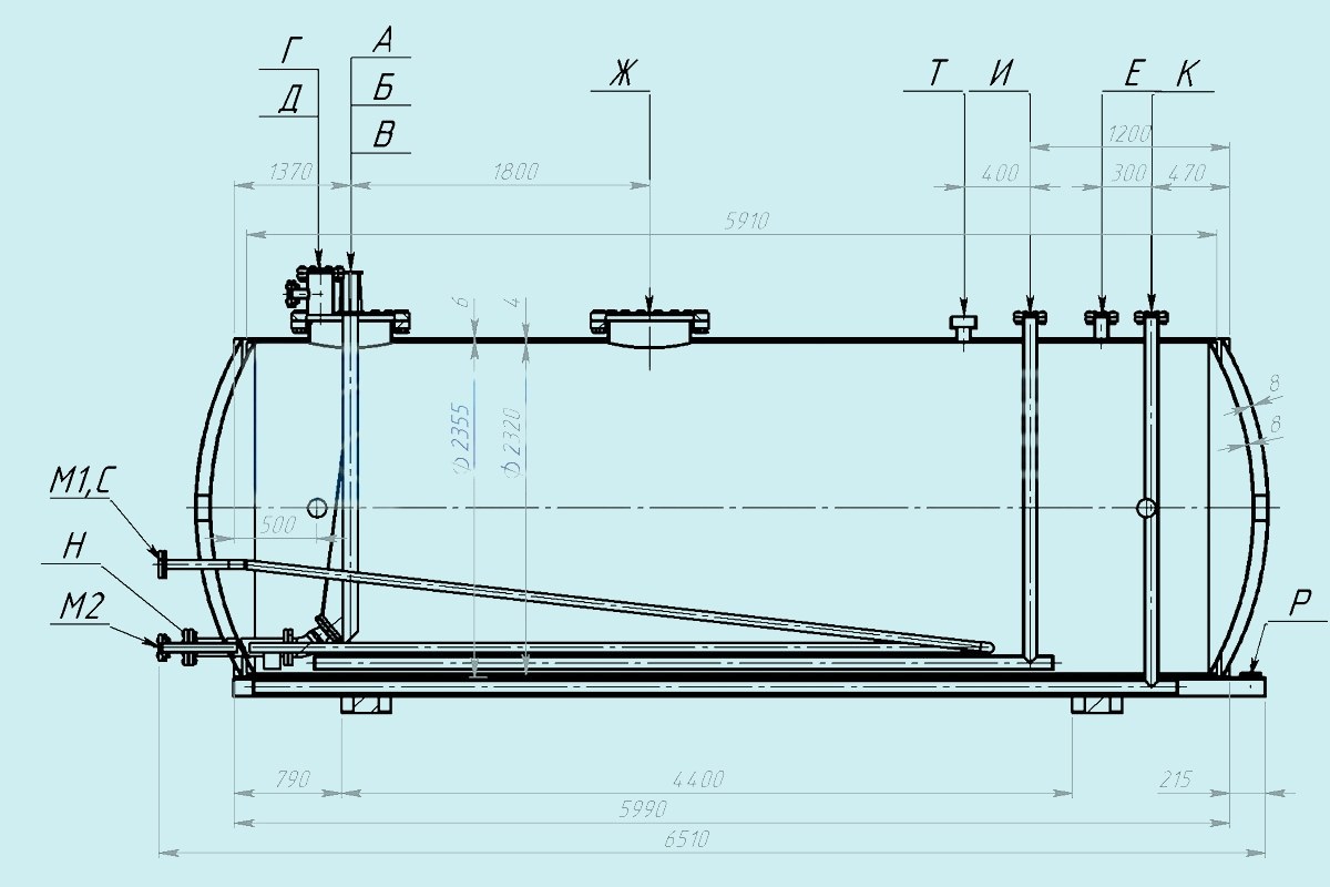 Чертеж Двустенный горизонтальный резервуар РГСД-25 м3