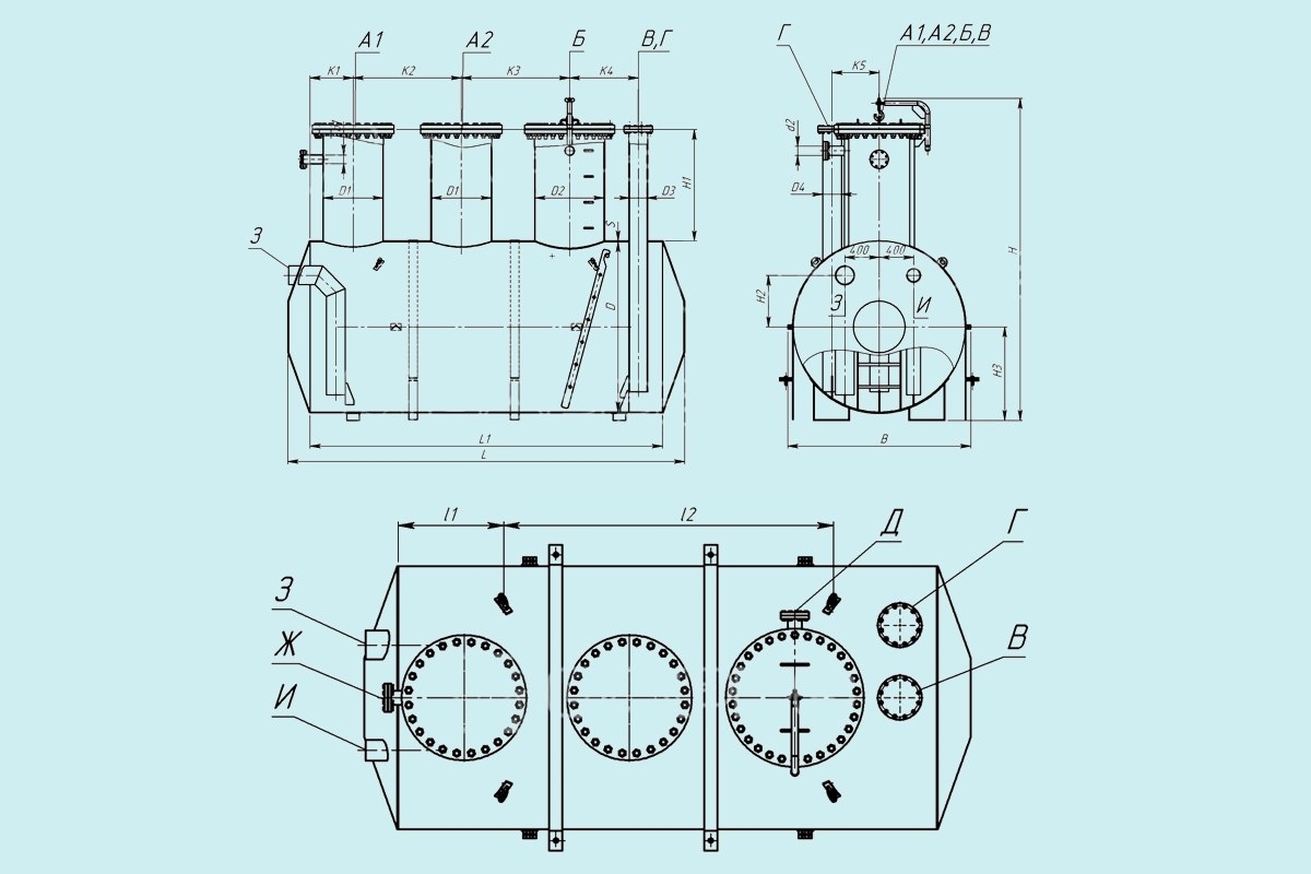 Данный вид резервуаров изготавливается из листов стали. Готовая конструкция имеет объем 12,5 куб.м., форму цилиндра и овальное, либо коническое днище. Благодаря современному оборудованию мы производим надежную долговечную продукцию.