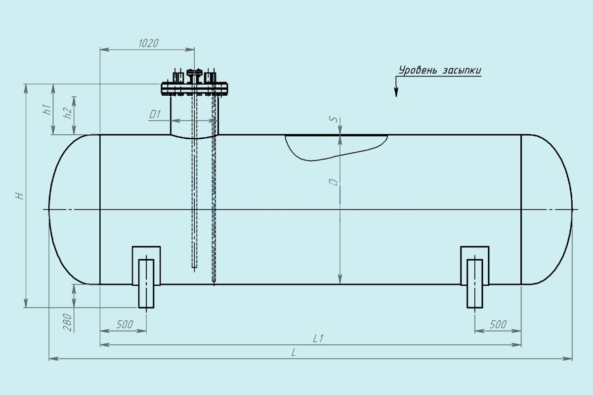 Сосуды для хранения СУГ 10 м3 проектируются и производятся согласно требованиям ПБ 03-584-03. Изделия имеют цилиндрическую форму с горизонтальным расположением относительно поверхности установки. Дно емкости выполнено в виде эллипса. Верхняя часть газгольдера оснащена горловинами, которые снабжены выводами штуцерного типа, используемые для подключения технологического оборудования. Емкость устанавливается на специальные опоры (лапы или стойки). Внешняя часть сосуда проходит многослойную обработку антикоррозийными веществами. Используются следующие процедуры: пескоструйная зачистка, грунтование, покраска.