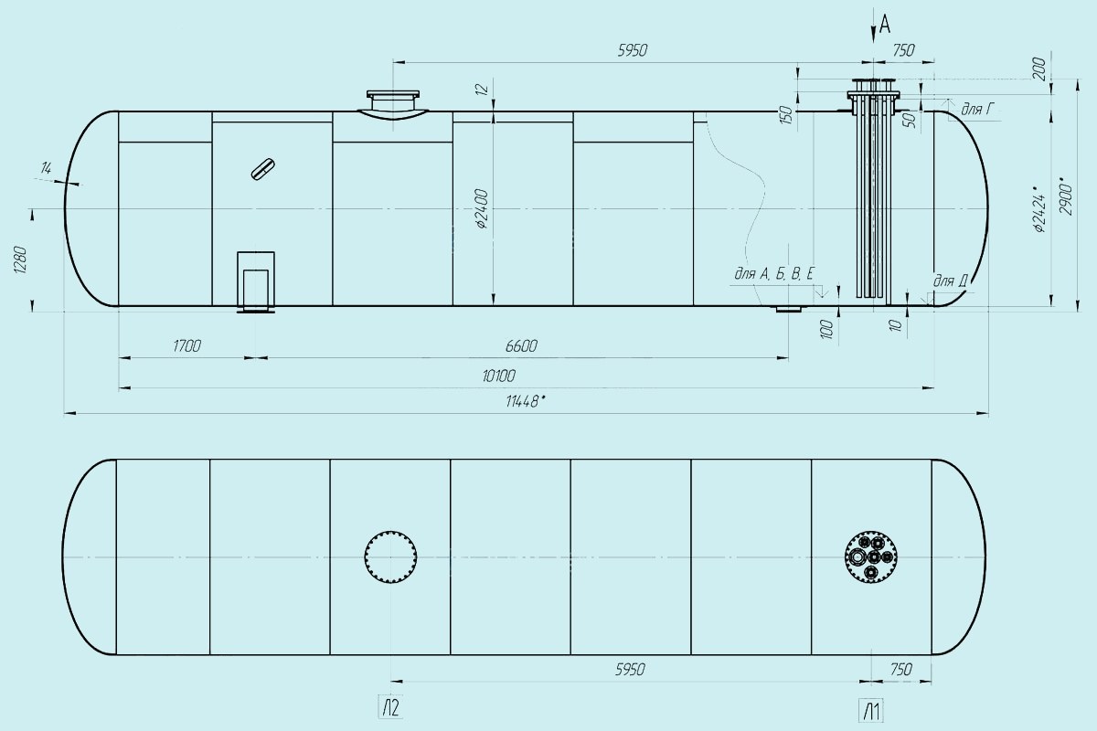 Резервуар объемом 50 мЗ предназначен для хранения сжиженного газа под давлением до 1,6 MПа в диапазоне температур от -60C до +50C. Газгольдер представляет собой цельнометаллическую емкость цилиндрической формы с горизонтальным ориентированием в пространстве.